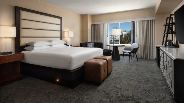 Guests enjoy outstanding service from attentive staff from the moment they enter the marble-and-glass lobby. For daytime relaxation, laze cocktail-in-hand in a cabana on the expansive pool deck or head to the spa for a soothing massage. There’s also a 24-hour fitness centre for active types who want to work out during their stay. When you want to get out and explore, you’ll find yourself within easy reach of Sacramento’s best sights – the California State Capitol is less than 320 yards from the hotel and the historic Old Sacramento Waterfront is just a 10-minute walk away.