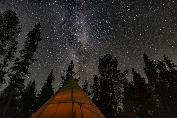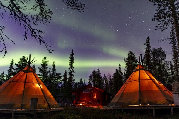 Enjoying a special three-course dinner out in the wilderness, under the stars – and hopefully the northern lights – is an experience not to be missed. Depending on where you are staying, this can be arranged at one of the snowy forest camps or even on an ice-covered lake in the comfort of a tepee heated by a campfire.