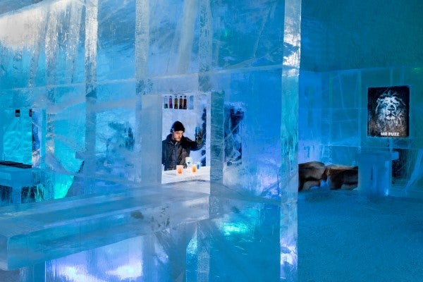 From the moment you step inside the door, you’ll understand why this hotel is famous around the world. From its hallways lined with ice art and glittering chandeliers to the atmospheric ice bar, you’ll be captivated by the magical atmosphere. There are also many warm areas at the ICEHOTEL. The Lounge Bar is located in the main reception building, and across the road you’ll find the ICEHOTEL Restaurant serving mouth-watering meals including the famous Ice Menu and Chef’s Table.