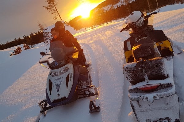 Take an exhilarating drive on frozen lakes and forest paths, stopping for a Swedish Fika, coffee and cake by the campfire. Choose the length of your trip, from a short introductory ride to a longer trip deep into the wilderness, perhaps with a dinner by a campfire and under the night sky. You can choose to share your snowmobile or have the machine to yourself.