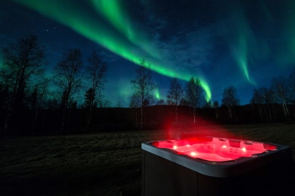 Situated in the middle of the forest, far away from light pollution, Logger’s Lodge is a private eco-luxury wilderness lodge for two in an ideal location for viewing the northern lights. The clean air and total silence of the surrounding area make this a perfect spot for deep relaxation. A wood-fired sauna and outdoor hot tub are available for your private use at any time, day or night.