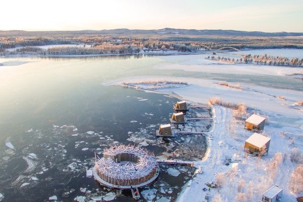 The brainchild of the team behind the nearby Treehotel, this 12-room hotel has been designed by architects Bertil Harström and Johan Kauppi and aims to harness the extreme Arctic seasons. Constructed using local materials and with very little impact on the environment, the circular design of the main building is centred around an open-air plunge pool.