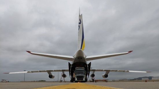 Inside, up to 19 passengers can be seated in four seating zones, one of which can be configured as a private stateroom with a lie-flat double bed. There’s a sizable galley at the front of the aircraft along with a lavatory for staff, while a separate enclosed lavatory at the rear of the cabin leads to the baggage compartment.
