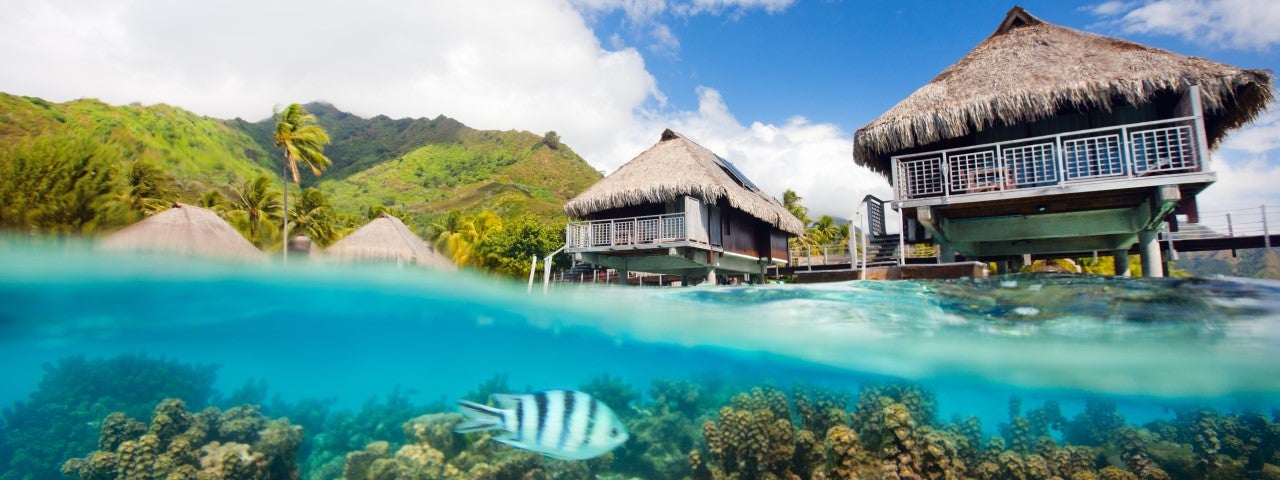 The Muraka is an opulent three-bedroom residence with its own private butler and infinity pool, where the show-stopping master bedroom is submerged within a transparent 180-degree dome with uninterrupted views below the waves. The hotel continues the underwater theme with glass-bottomed spa rooms and an undersea restaurant.