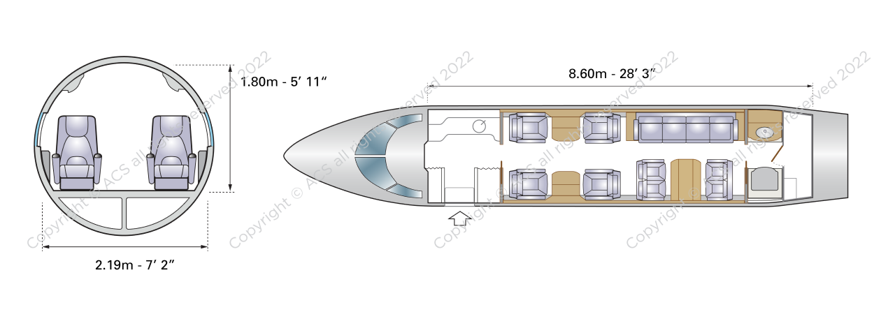 - The cabin is almost two feet wider than on an Embraer Legacy 600 – a competitor in the heavy jet class.