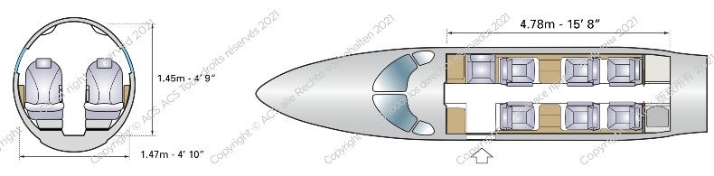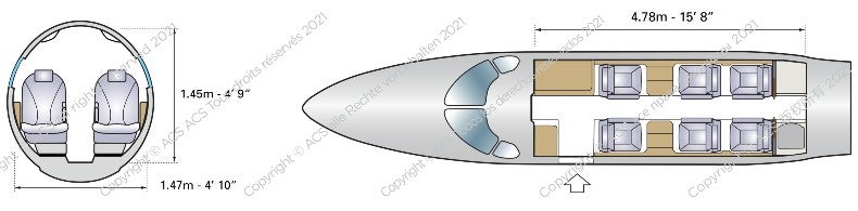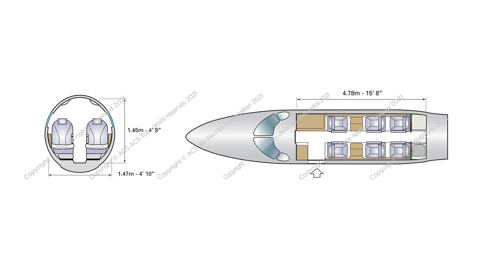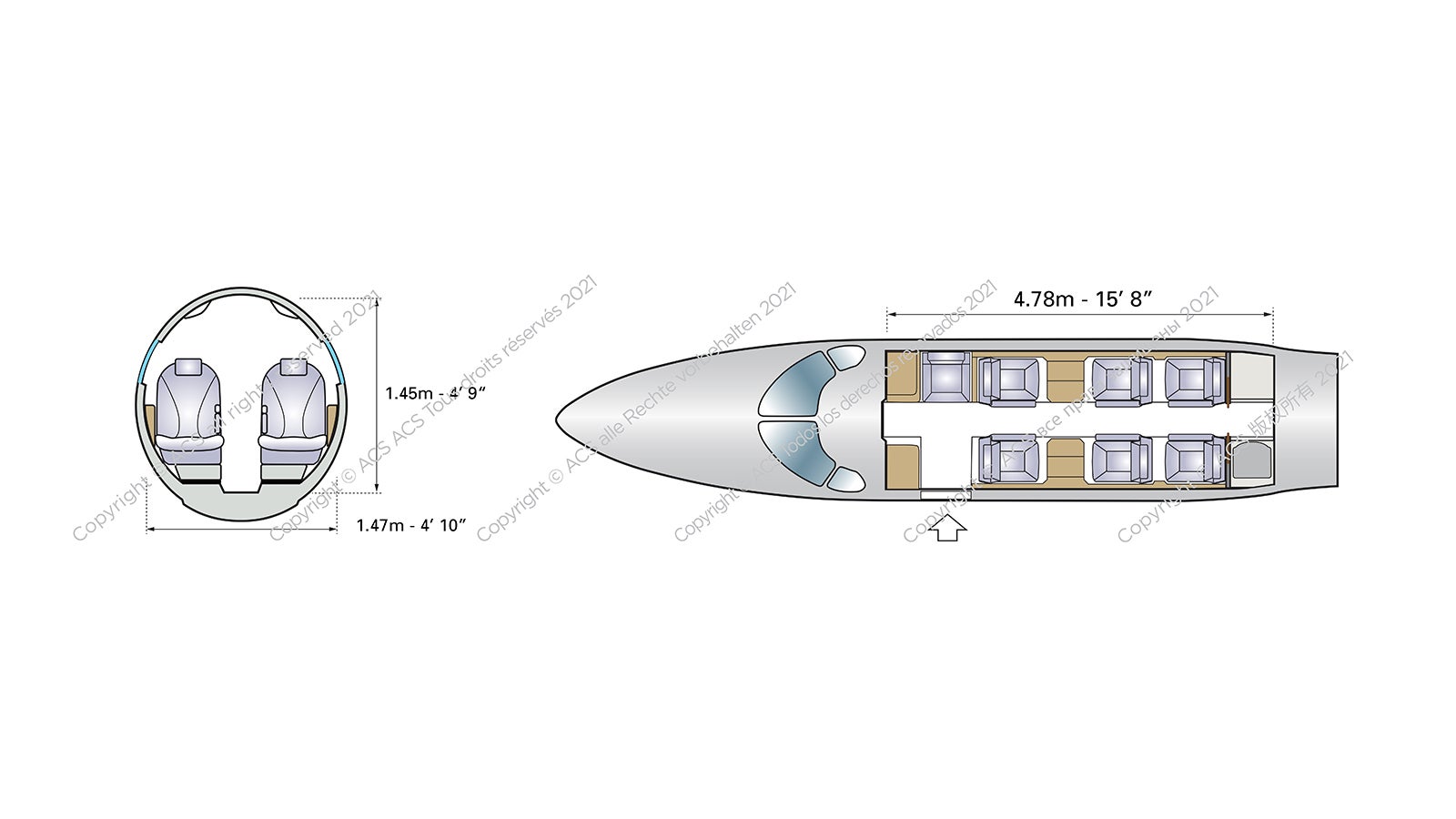 An executive formation is also popular, with an eighth passenger seat instead of a galley at the front of the aircraft.