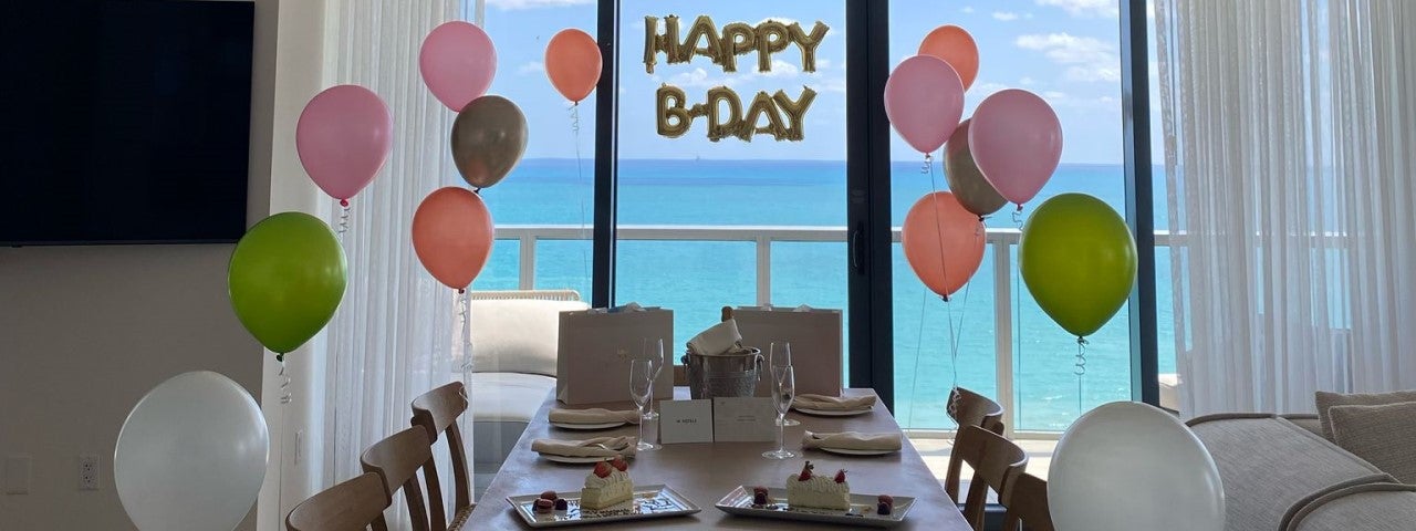 Our private jet team arranged the charter of a Gulfstream business jet to fly the group to Miami and back, knowing its spacious cabin with luxurious leather seats made the perfect setting for kicking off the celebrations in style. We made the outbound flight extra special with birthday decorations and cupcakes for the passengers to enjoy onboard.