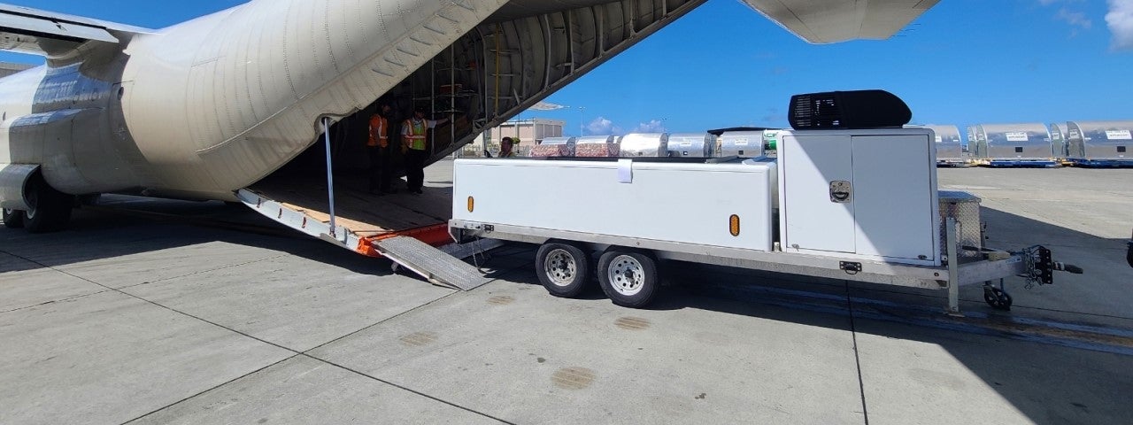 In August 2023, a freight forwarder working for a North American wireless network operator asked us to help deliver critical satellite equipment from the mainland to Hawaii. Five mobile cell tower trailers, each weighing 4,000 lbs, were needed to restore communications for first responders and victims of the Maui wildfires. Scheduled services could fly the outsize relief cargo to Honolulu, followed by a lengthy barge transfer to Maui, but the client needed a quicker solution.