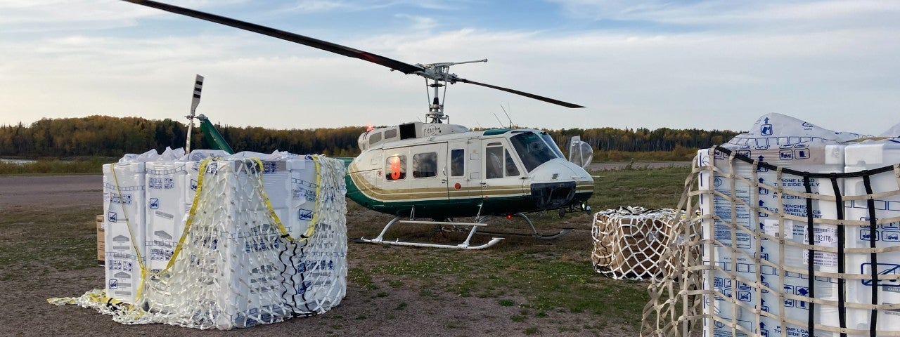 In October 2021, a Canadian humanitarian network asked us to help transport a shipment of refrigerators from Winnipeg to a remote eastern Manitoba community, whose residents had been evacuated whilst their homes were repaired following wildfires. With no runway or landing strip in the hard-to-reach settlement, we had to think outside the box to safely deliver the vital cargo.