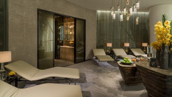 Nestled high above the city, the holistic spa is home to six luxurious treatment rooms and three VIP couples’ rooms with oversized vitality tubs and rain showers. In the women’s relaxation area you’ll find a Vichy-style shower, Rhassoul chamber, crystal steam room and laconium, while the men’s area has a herbal steam bath, sauna and ice fountain. Swim laps in the impressive pool or work out in a 24-hour fitness centre, before unwinding on a poolside terrace that seems to be floating in the clouds.