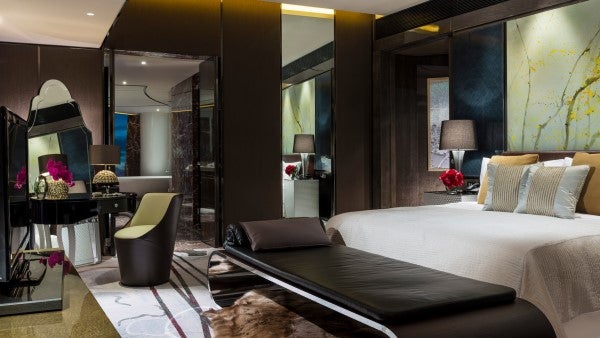 The hotel’s 344 chic rooms and suites are on the 74th to 98th floors, featuring contemporary Asian décor and floor-to-ceiling windows with unrivalled views of the river or city skyline. Oversized marble bathrooms have deep soaking tubs and walk-in rain showers, while in-room technology includes 42-inch LCD TVs and iPod docks. Guests also enjoy unlimited access to limousine services and 24-hour in-room dining.
