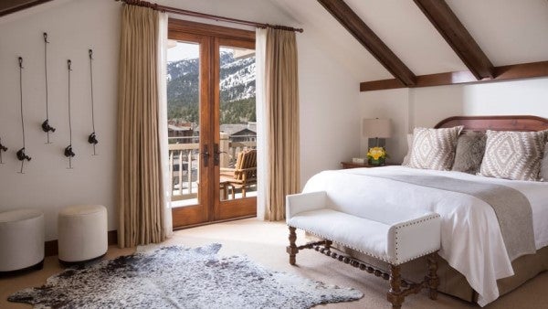 Sleeping up to 12 guests with panoramic views of the Teton Range’s stunning peaks, this top-floor penthouse suite is ideal for multi-generational family retreats or a long weekend with friends. As well as five bedrooms with private balconies and ensuite marble bathrooms, there are two living areas, a large outdoor terrace, a gourmet kitchen and a dining room with a table for 10 people.