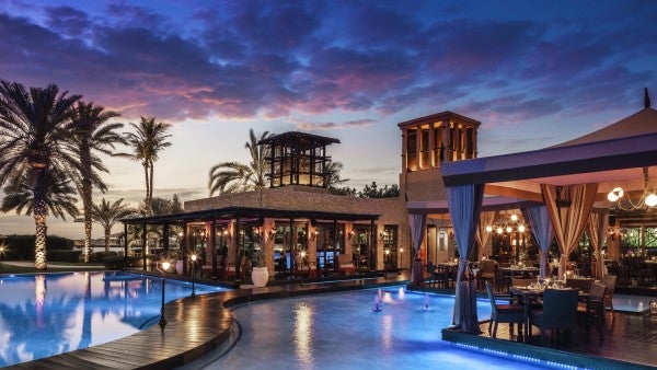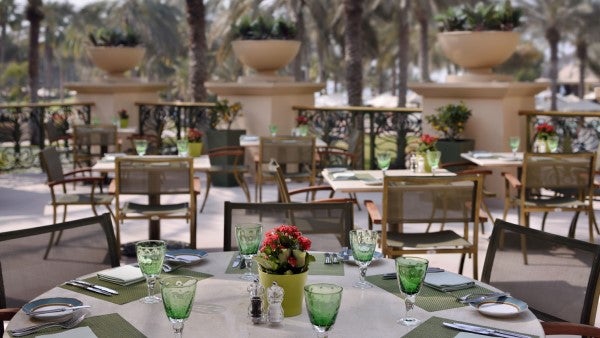 The resort is split into three properties linked by shuttles: the Palace, the Arabian Court and the Residence & Spa – an exclusive hideaway with its own reception, pool, restaurant and bar. Whichever they choose, guests can expect opulent sea-facing rooms overlooking the gulf from private balconies or patios. Styled in neutral tones with Arabian-style lanterns and embroidered textiles, each features a king-size bed with high thread count sheets and a marble bathroom with walk-in shower, twin vanities, luxury toiletries and even a television by the bathtub. Service is faultless throughout – rooms are pre-stocked with guests’ favourite treats like chocolates and macaroons – but for an extra treat, Gold Club Rooms come with complimentary breakfast, afternoon tea and cocktails in a private lounge, while suites benefit from their own pool cabana.