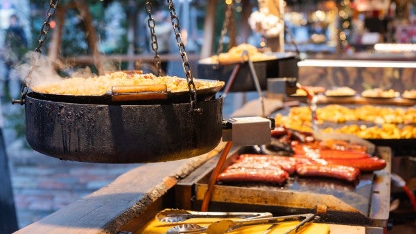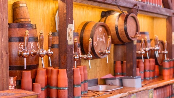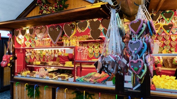 Staying true to the Bavarian theme, German merchandise like nutcrackers and cuckoo clocks are available throughout, along with warming winter staples like bratwursts, sauerkraut and schnitzels.