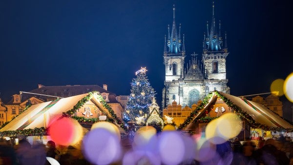 The city’s largest festive markets are in the Old Town Square, home to a medieval astronomical clock, and the more commercial Wenceslas Square, which is a 10-minute walk away. Czech specialities on offer include trdelník (flame-baked cinnamon cakes), klobasa (sausages), and medovina (honey liquor). The Christmas market with the finest view is up on Hradčanské Square next to Prague Castle, where a handful of rustic stalls overlook the breathtaking Little Quarter where composers Mozart and Beethoven once lived.