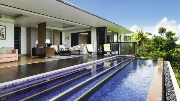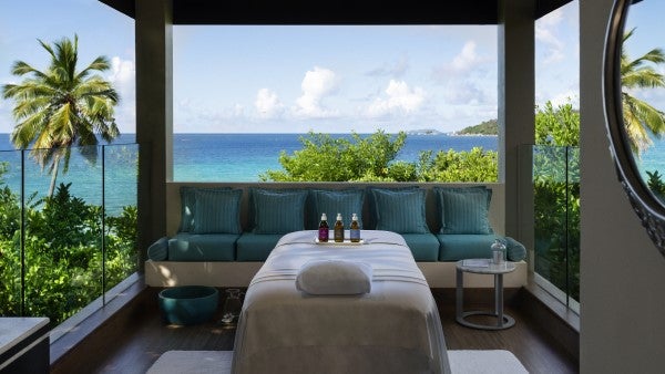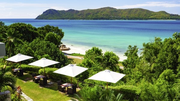Nestled in secluded 30-acre grounds on the tropical island of Praslin, Raffles Seychelles sits between jungle-cloaked mountains and the powdery sands of Anse Takamaka.