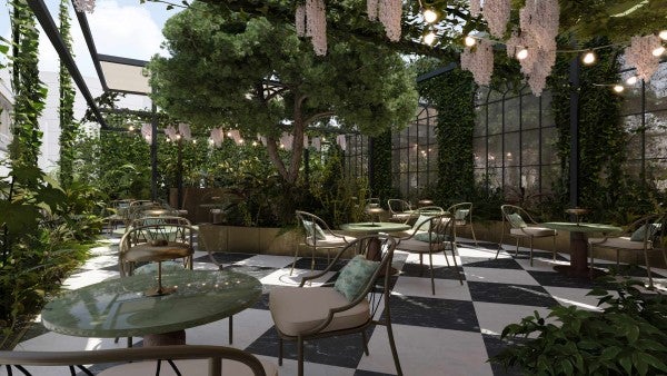 Meals are served overlooking the city skyline in the hotel’s sophisticated sixth-floor brasserie, Neue Hoheit. Guests start the day perusing an extensive à la carte breakfast menu, before returning for regional cuisine prepared in the show kitchen at lunch and dinner. There’s also a rooftop cocktail bar with stunning city views, perfect for pre- and post-dinner drinks, and a private alfresco Garden Room with its own secret garden.