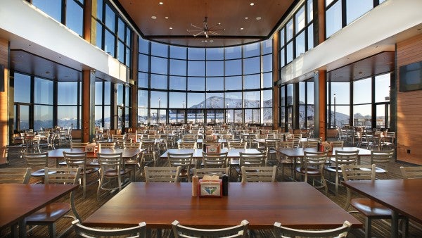 The Atrium fuels guests for a day on the slopes with hearty breakfast buffets and gourmet coffees and pastries. In the evenings, 10th-floor restaurant The Aerie serves upscale gastro-pub cuisine made with local organic ingredients and complemented by an award-winning wine list; or feast on sophisticated comfort food prepared in an open kitchen at retro American grill SeventyOne. There’s also a range of dining options elsewhere in the resort, from a rustic steak house at the Snowbird Centre to an Italian restaurant and pizzeria at Iron Blosam Lodge. For the ultimate meal with a view, ride the aerial tram to the top of 11,000-foot Hidden Peak for dinner at The Summit.