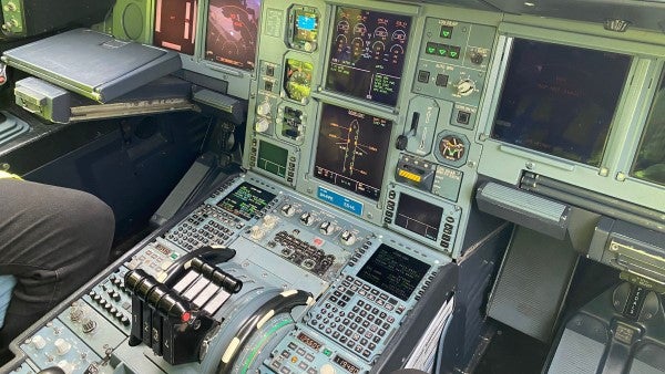 The A340 has the same flight deck as the A320 and A330, including side-stick controllers and a six-screen electronic flight instrument system (EFIS). It also shares the A330’s digital fly-by-wire flight control system, basic airframe, systems, fuselage and wing.