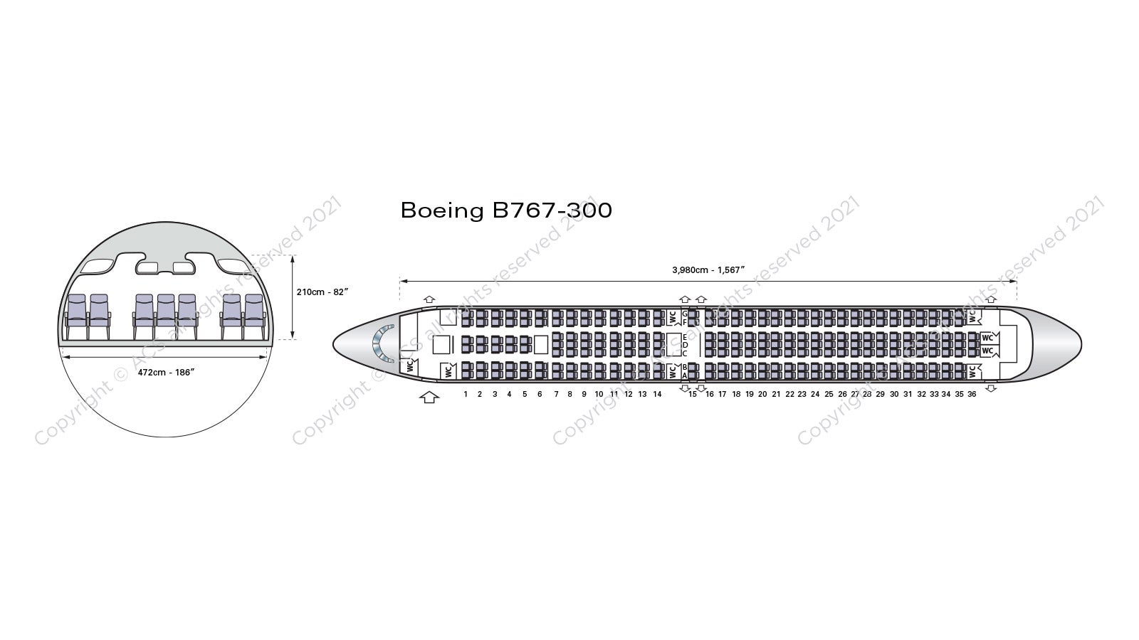 The B767-200 and 300 are both of mid size with wide bodies, making these aircraft ideal for continental commercial charters. The fuselage of the 300 is slightly longer than the 200, the 200 has the capacity to sit 255 in a single class, whereas the 300 can carry up to 350 passengers.