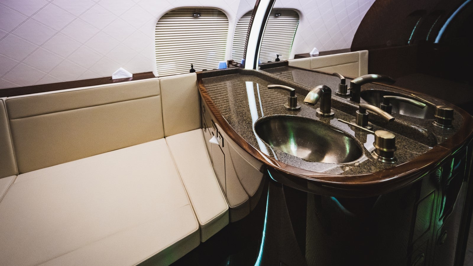 Not only does the Bombardier Global 5000 boast one of the widest cabins in the heavy jet class, but with about 1.9 metres of headroom, even the tallest passengers can stand up and move around without needing to crouch. With ample space in the cabin for 13-14 passengers and a layout that’s perfect for meetings, entertainment, dining and relaxation, the cabin is a big draw for charter customers.
