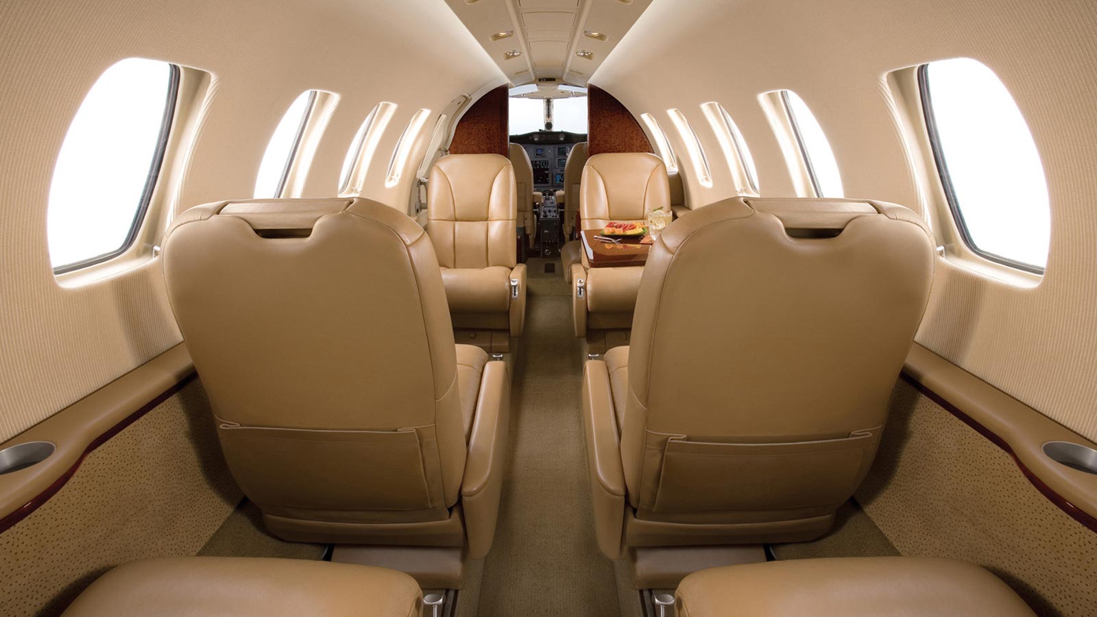 The CJ2/CJ2+ is based on the design of the CJ1, but with a cabin 20% longer than its predecessor. Adjustable deep-cushioned reclining seats track inwards, towards the aisle, to create maximum usable seated room. The CJ2+ also features a laminar-flow wing which maintains the flow of air in a more efficient manner, thus significantly increasing cruise speed.