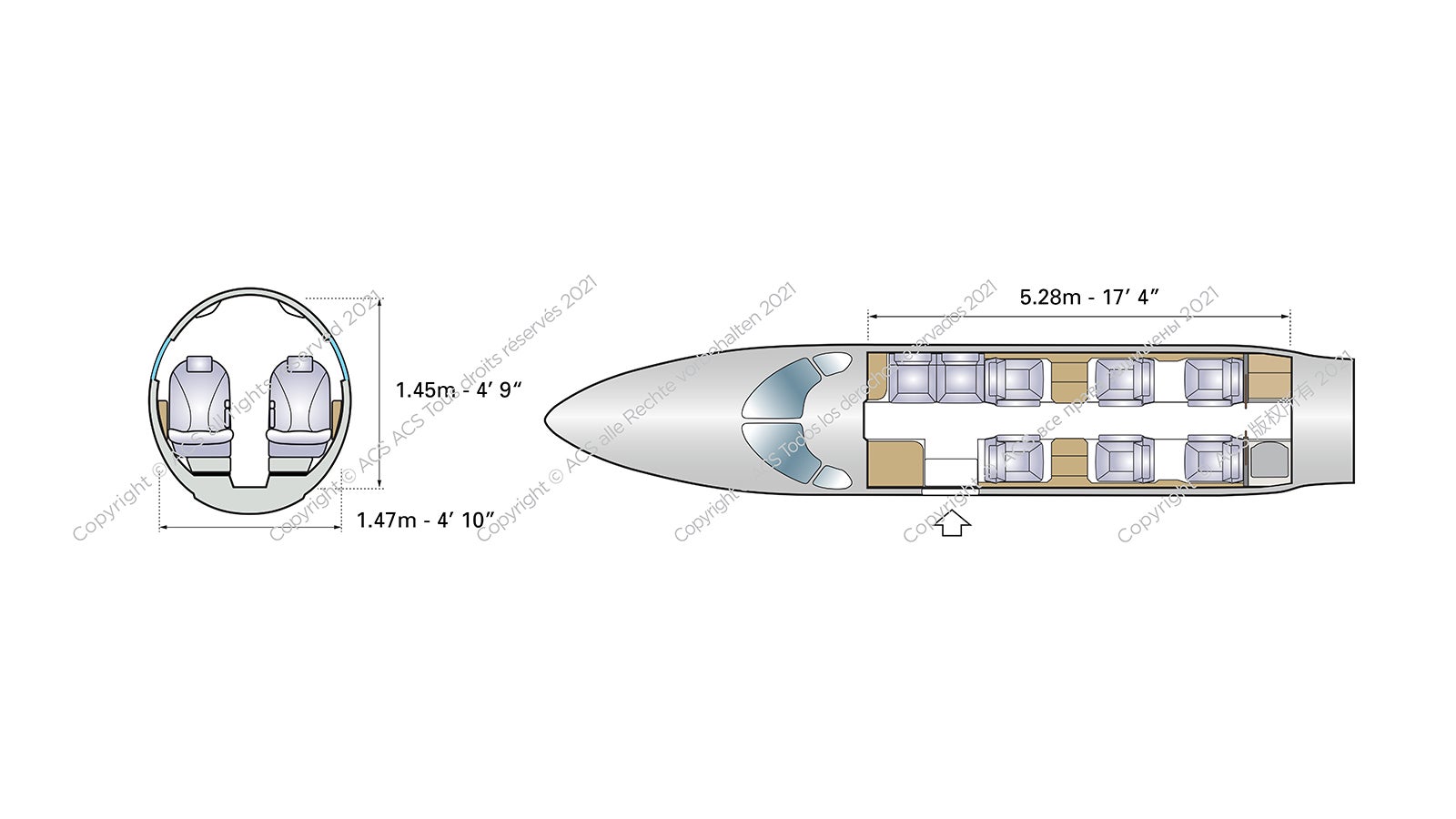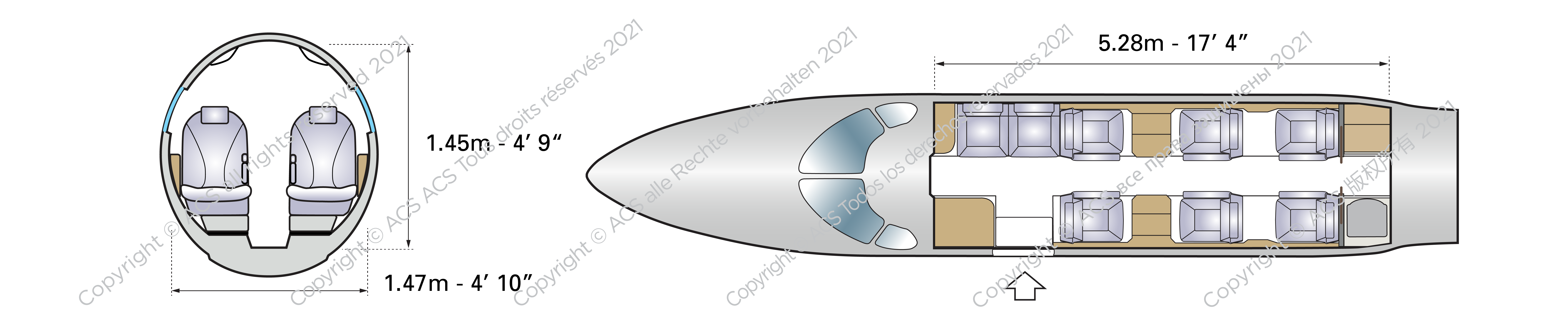 - The cabin is slightly smaller than that of a Pilatus PC-24 or Embraer Phenom 300.