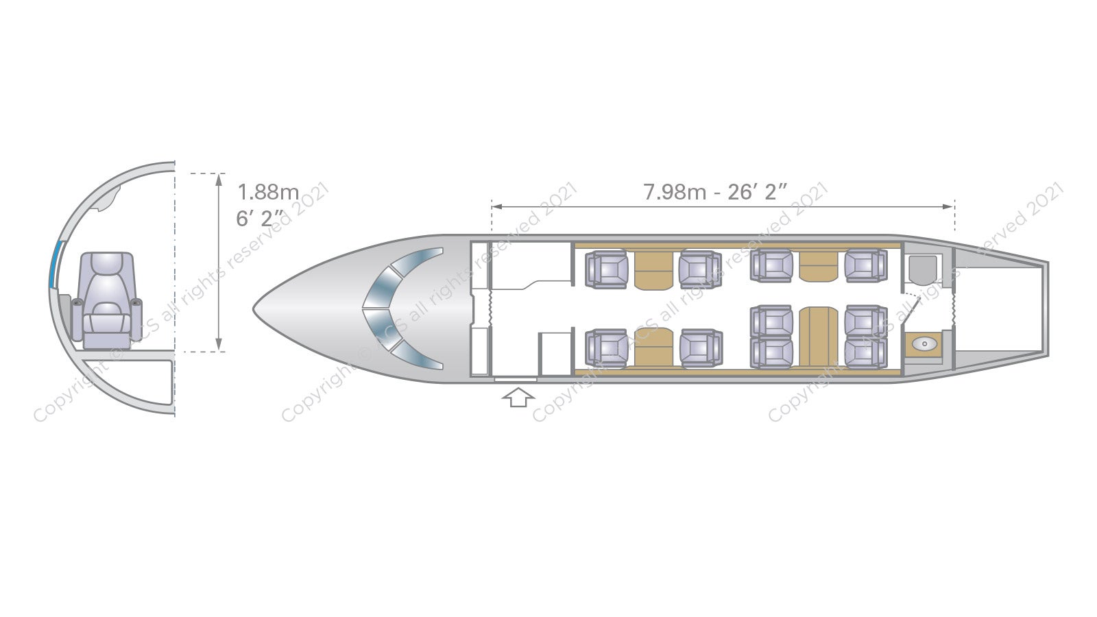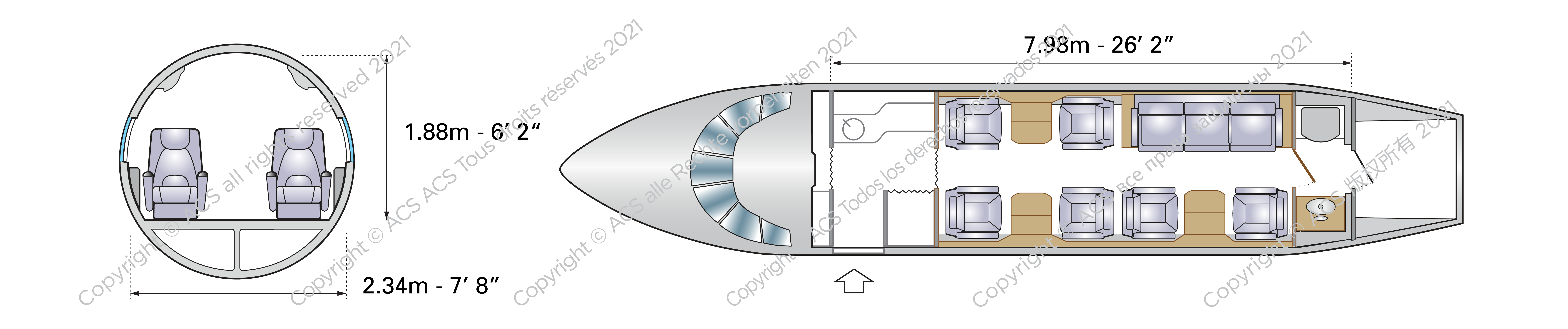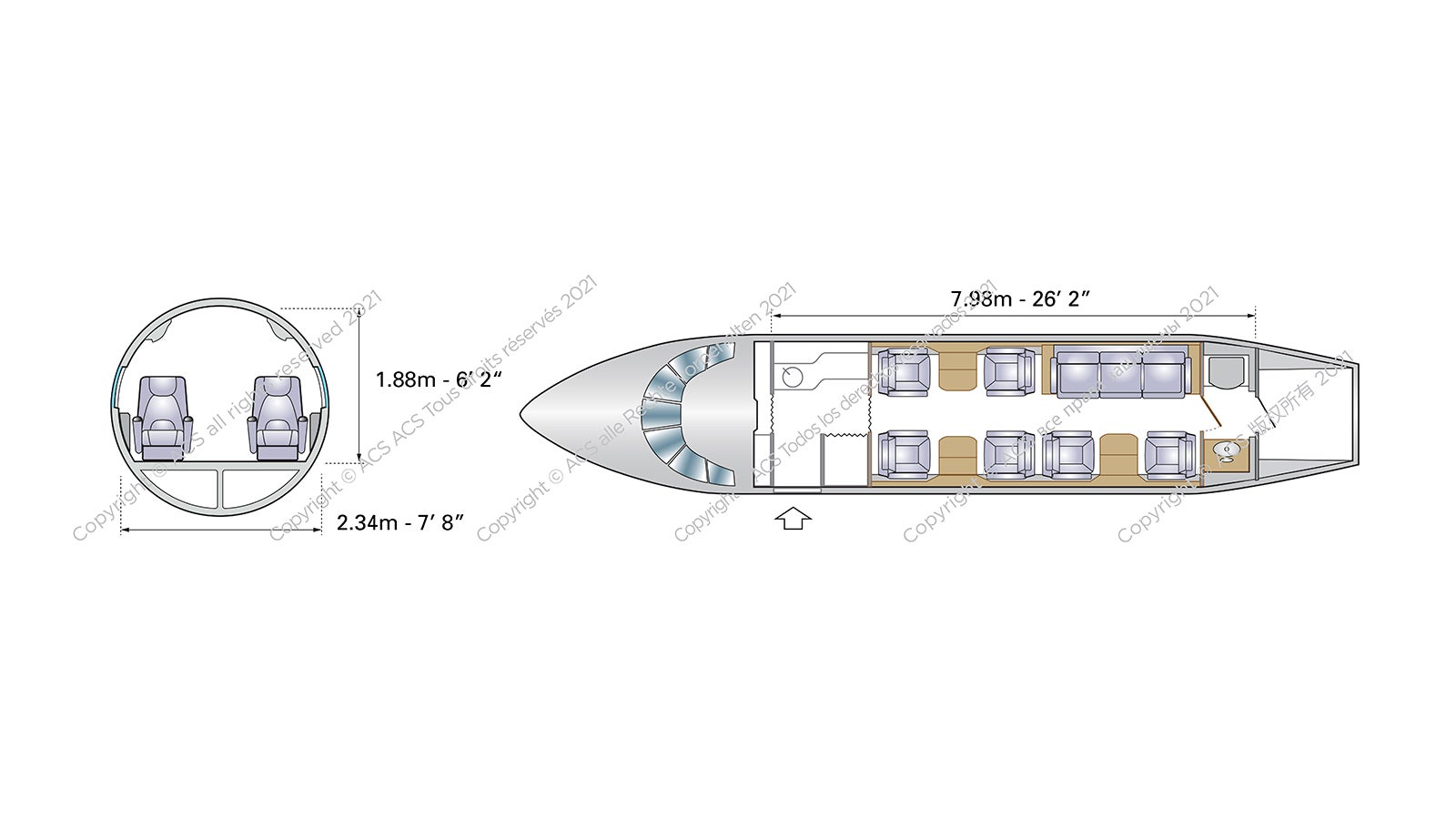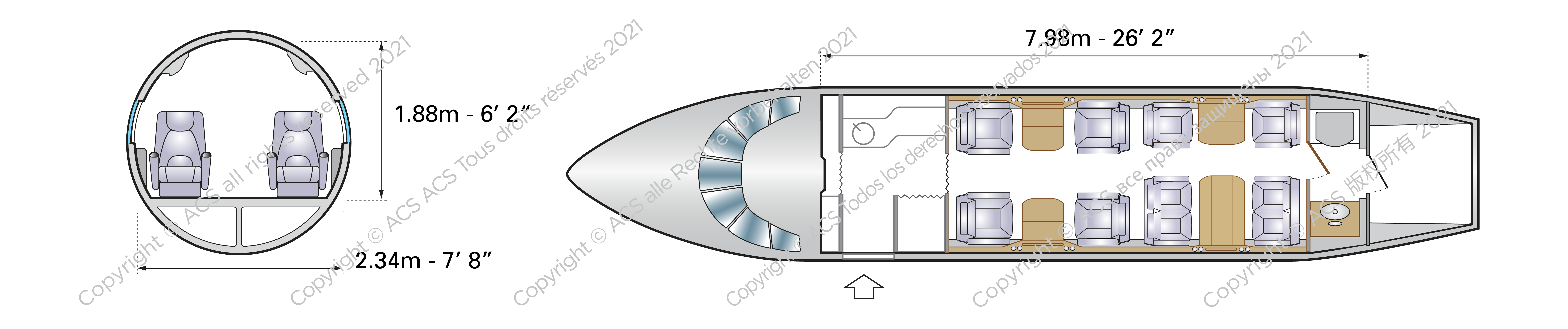 Below are two typical configurations for the Dassault Falcon 2000S.