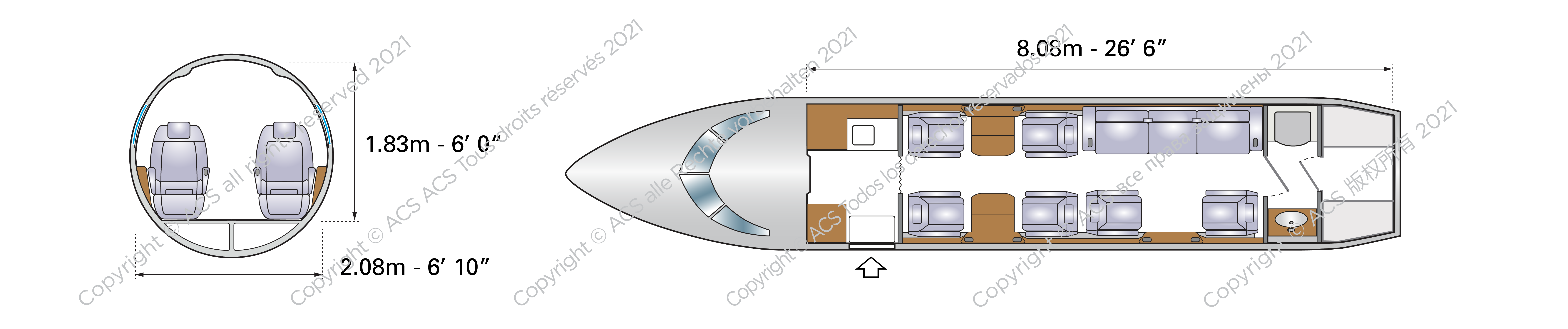 - It offers excellent amenities and luggage capacity compared to competitors such as the Bombardier Challenger 350 and Cessna Citation Longitude.