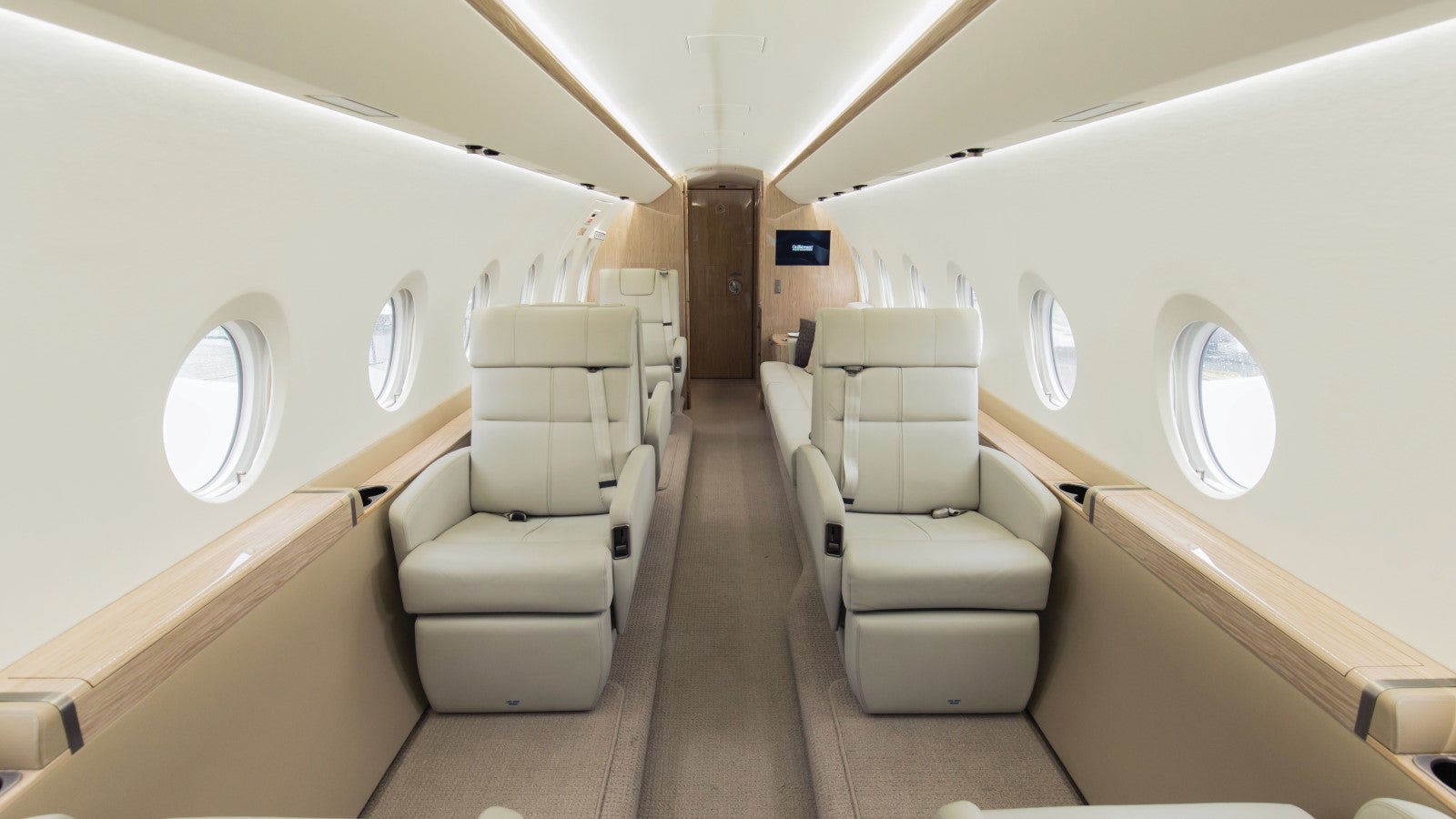 - Gulfstream’s signature cabin windows are particularly large with a sleek oval shape, flooding the cabin with light and positioned to give passengers a view of the world below from the comfort of their seats.