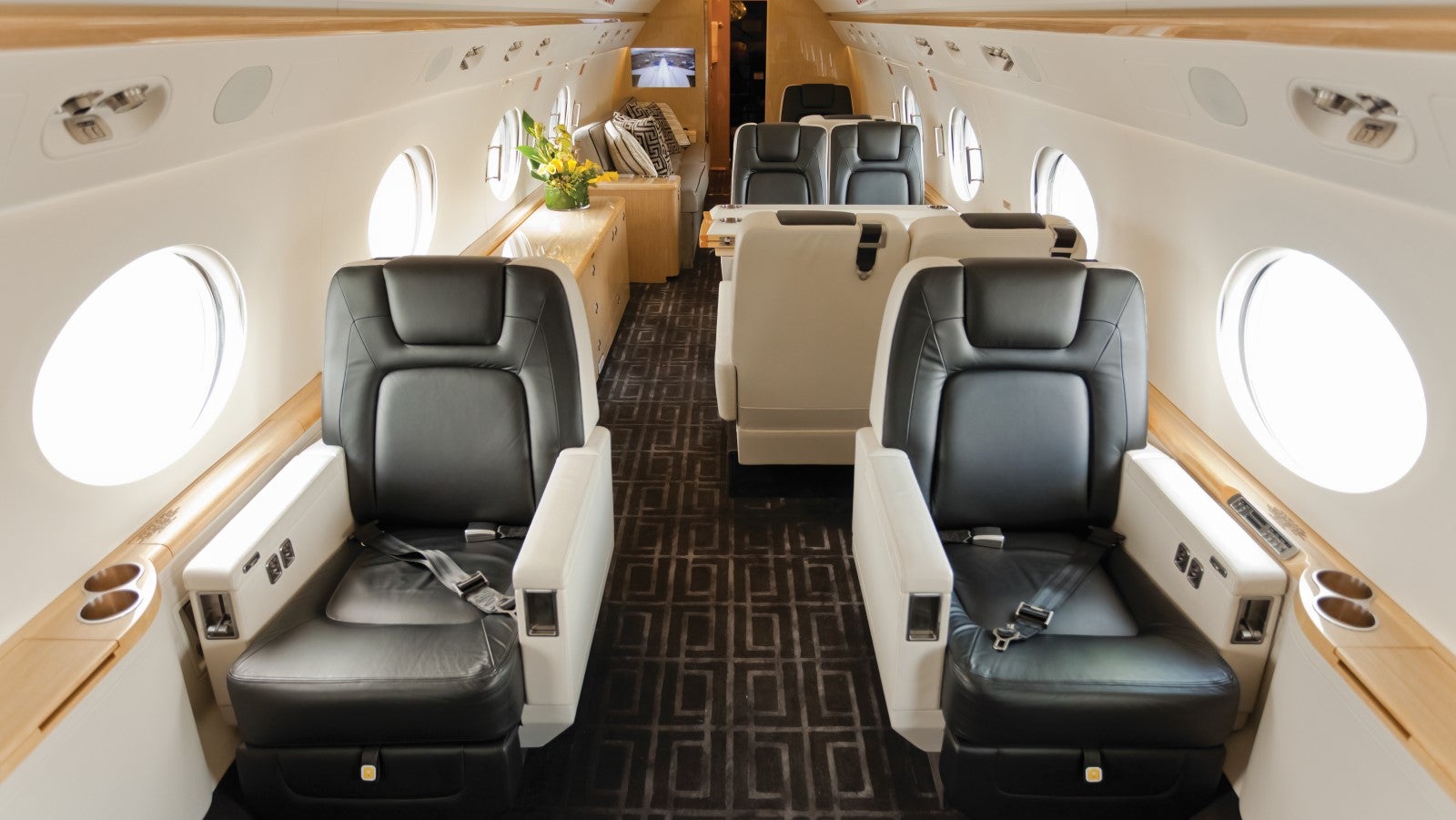 The award-winning Gulfstream G550 is a spacious heavy jet that can fly 19 passengers non-stop from New York to Dubai.