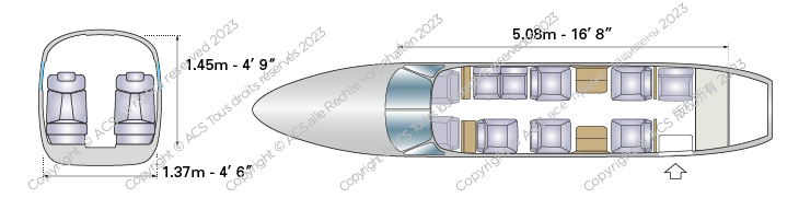 Despite its small size, the King Air 100’s versatility and affordability make it a great charter aircraft for short-distance trips such as Los Angeles to San Francisco and Paris to Cannes.