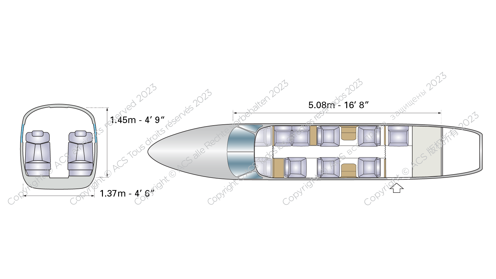 - It isn’t banned from certain noise-sensitive airports and can be flown by a single pilot, resulting in lower operational costs than a two-pilot private jet.