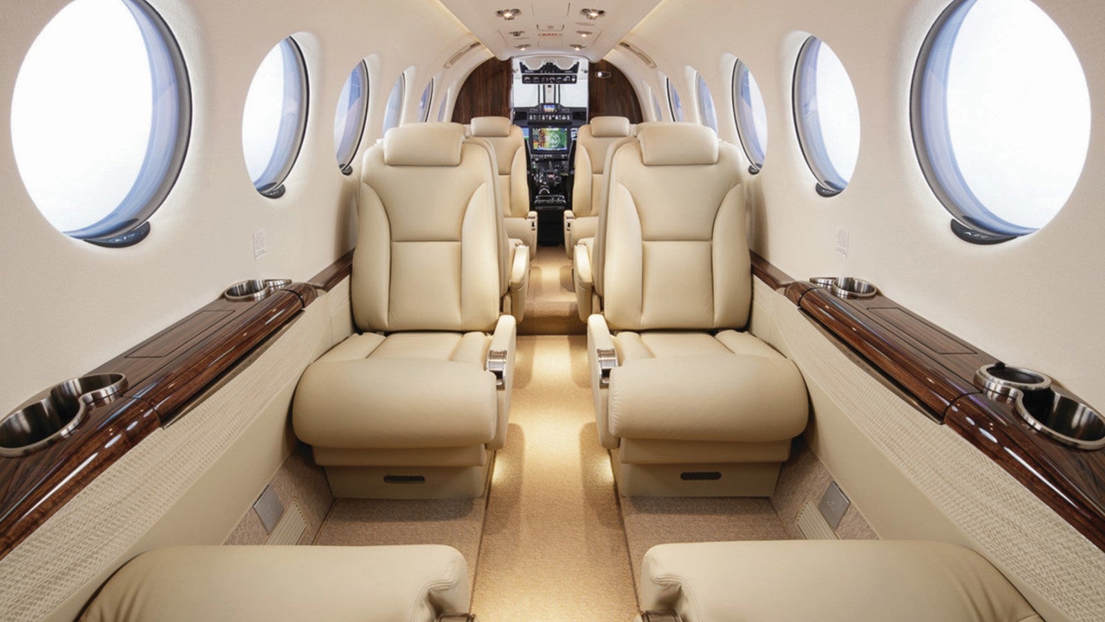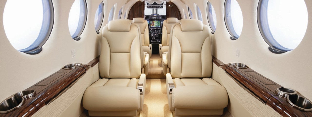 The King Air 350i variant was released in 2010 with a quieter and more comfortable cabin. Modcons onboard include extra USB ports and electrical outlets, plus remote controls in the armrests that control the lighting and inflight entertainment.