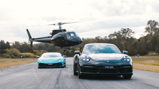 A high-net-worth social media personality asked us to coordinate a video shoot, featuring a helicopter flying in the background as the client’s personal collection of Porsche & Lamborghini supercars drove along a private runway.
